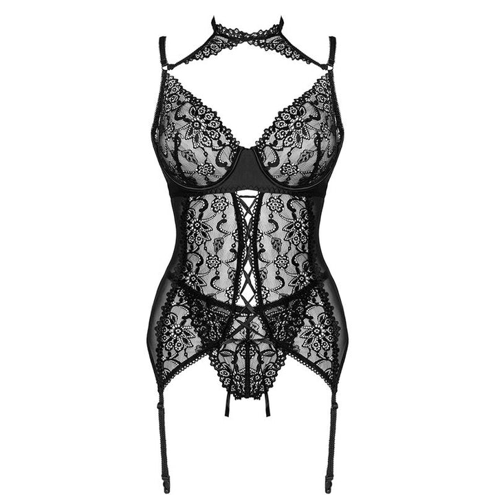 El corsé para los sentidos Giellandra es un conjunto de la lujosa marca polaca LivCo Corsetti Fashion que consta de 2 elementos: un corsé y un tanga. La ropa interior es del clásico color negro. El corsé se sujeta con ganchos, lo que permite el ajuste y garantiza comodidad. También es posible ajustar la longitud de los tirantes y colocar medias, lo que diversificará enormemente el estilo. Se trata de una propuesta perfecta para las mujeres que valoran la comodidad, pero no quieren renunciar a una apariencia sensual. La ropa interior está hecha de 90% poliamida y 10% elastano. Esta combinación de materiales hace que el conjunto sea muy flexible y no restringe el movimiento. El juego incluye inserciones decorativas de encaje resistente que realzan las formas femeninas en los lugares más importantes. El corte y el ribete en el vientre hacen que el corsé sea sofisticado y al mismo tiempo deja espacio para la imaginación. Un elemento inusual es una gargantilla que llamará la atención sobre el cuello y la clavícula. Este corsé sexy sin duda animará muchas veladas románticas.