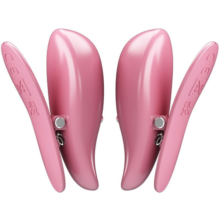 Estas lindas pinzas para pezones de color rosa agregan versatilidad divertida a toda tu diversión en el dormitorio con su diseño liviano e inalámbrico que se adhiere fácilmente con una superficie suave. ¡Cada pinza tiene 10 modos de vibración para explorar, que tú o tu pareja pueden controlar por separado para un placer personalizado!