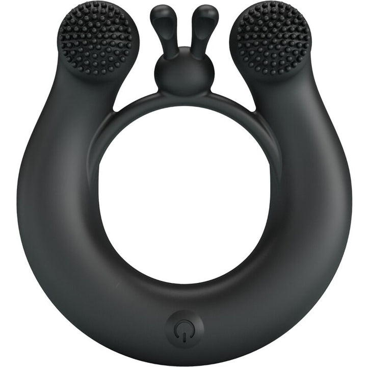 El anillo de silicona se ajusta perfectamente alrededor del eje para atrapar el flujo sanguíneo y mantener al usuario más duro durante más tiempo, al mismo tiempo que retrasa e intensifica su clímax para dar como resultado un final explosivo. En el interior, a ambos lados del anillo para el pene, dos motores impulsan el anillo con 12 modos de vibración tentadores, que hacen que las puntas del estimulador parpadeen y revoloteen contra los puntos más sensibles de la pareja receptora.