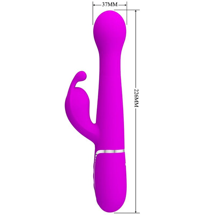 Diseñado para el máximo placer, quédate en la cama con el Vibrador Conejo Pretty Love. Con potentes motores gemelos, uno ubicado en la punta y el otro en el brazo externo, te prometemos que encontrarás tu vibración perfecta mientras 7 intensidades y ritmos de vibración te llevan a un poderoso clímax combinado. Con una sola fila de perlas rígidas que viajan hacia arriba y hacia abajo en un emocionante masaje íntimo, disfrute de las tres configuraciones de velocidad mientras frota constantemente su sensible punto dulce. Para mayor placer, presione el botón Burst Climax para explorar sus increíbles y trascendentales orgasmos.