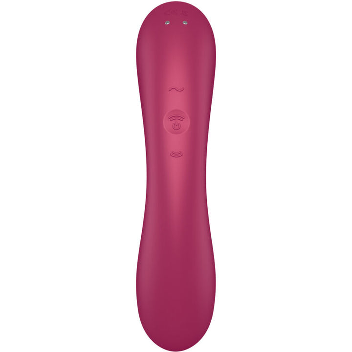 Curvy Trinity 1 funciona como un succionador de clítoris con tecnología Air Pulse, un vibrador de contacto y un vibrador de punto G, ¡todo en uno!